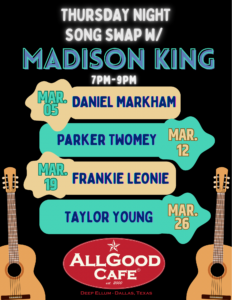 Dallas legend Madison King plays EVERY Thursday in March and brings along another super talent to play a set of songs you can’t miss.